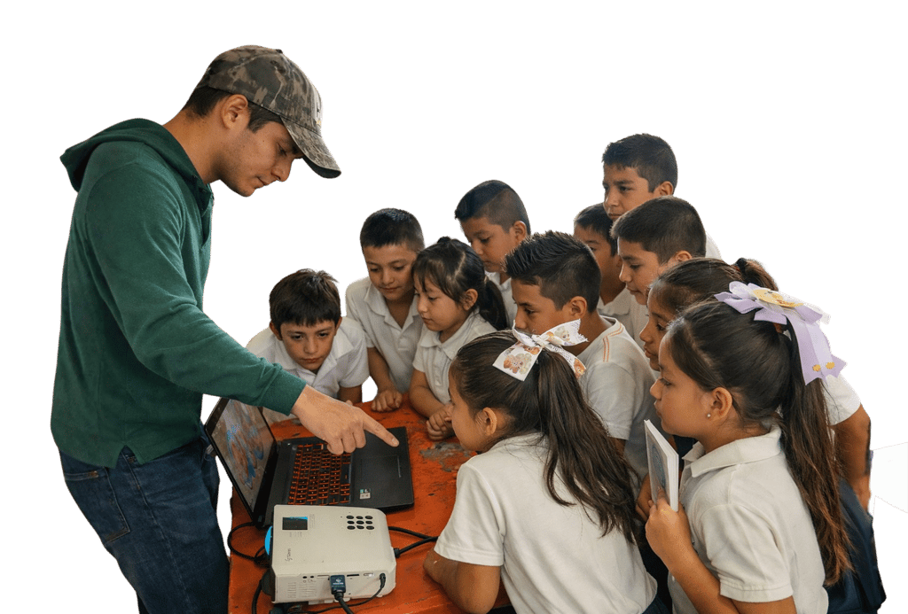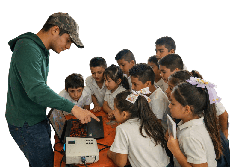 Llevamos charlas dinámicas y actividades didácticas directamente a las aulas para fortalecer la conciencia ambiental y promover acciones concretas desde el entorno escolar.